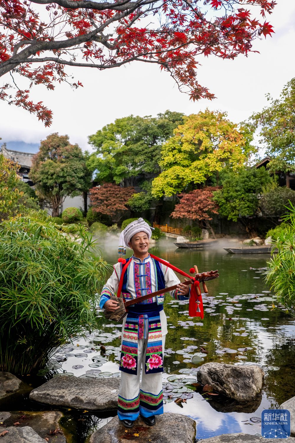 ↑ 11月23日,石宝山歌会省级传承人李兆元在2025非遗品牌推广周上弹唱。